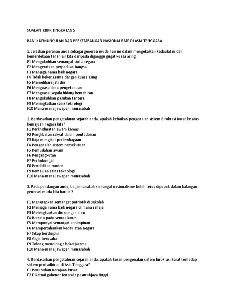 Related : Kertas 3 Bab 4 Tingkatan 5 : 1 tingkatan 5 kandungan bab tajuk ms 1 nasionalisme di asia tenggara 2 nasionalisme di malaysia sehingga perang dunia kedua 3 kesedaran pembinaan..